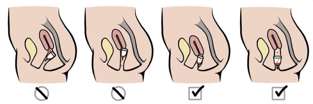 - dispositivo inserito male: la coppetta una volta inserita piegata, deve aprirsi completamente e aderire alle pareti vaginali creando un effetto “sottovuoto”. Inoltre va posizionata un po’ più in basso del collo dell’utero, al livello della muscolatura interna che contribuisce a mantenerla naturalmente in posizione corretta.