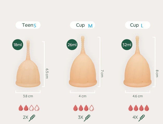 Taglia S se: Progettata appositamente per adolescenti e neofiti. Questa coppetta è piccola e facile da inserire.